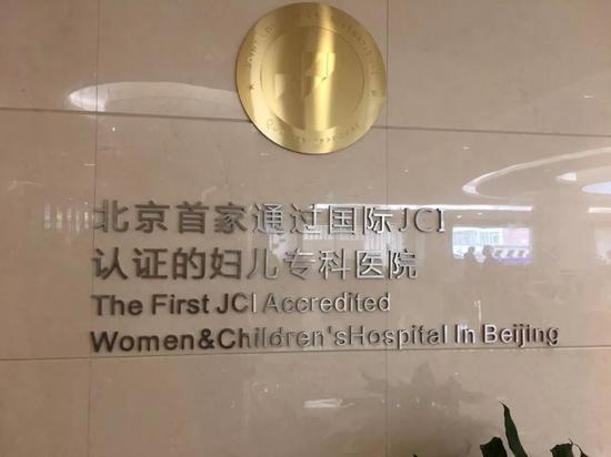在和美医院北苑路院区一层大厅,墙面上挂着“北京首家通过国际JCI认证的妇儿专科医院”的牌匾和文字。JCI标准是全世界公认的医疗服务标准,代表了医院服务和医院管理的最高水平,和美医疗是国内为数不多通过JCI认证的医疗机构之一。