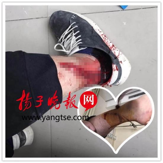 民警进入院内发现张某一人待在屋内哭泣,情绪仍未稳定。侍晔见孩子们安全,才松了一口气,这才感觉腿上有点疼,低头一看才发现自己的右腿已血迹斑斑!原来刚刚破门时,他的小腿被尖锐的铁皮划开了硕大的口子,伤口很深,鲜血不断涌出,转眼便浸湿鞋袜。因担心张某还会伤害孩子,民警王臣龙主动留下做张某的安抚工作,其他人安置好孩子后,才驱车将侍晔送往医院治疗。