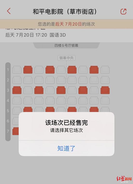 和平电影院率先开启网络售票(图据猫眼 APP)按照国家电影局的相关规定,影院全部采用实名制网络售票,目前上座率不能超过 30%,全部隔排、隔座,看电影期间也禁止饮食。