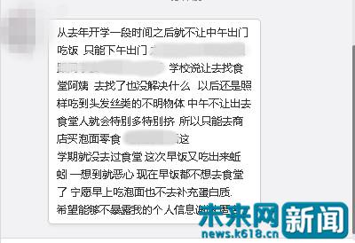 有学生在群里表示 “求学校放过” 受访者 供图对于自己的学校,学生对记者说:“现在不仅价格上面没有食堂应有的价格,成了花钱吃不到东西,这也就算了,但现在连食品安全都不能保证,人心惶惶。”