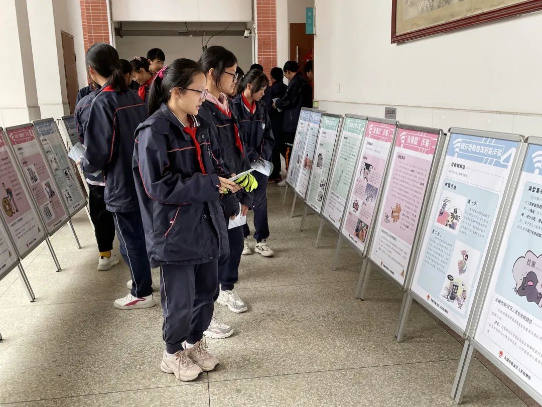 10月11日,新吴区检察院联合区公安分局,至无锡机电高等职业技术学校“送法”进校园,在教学楼大厅放置防范电信网络诈骗宣传展板。同时,检察干警也来到校园内,向同学们发放法治宣传手册,同学们纷纷驻足围观,引发热烈讨论。