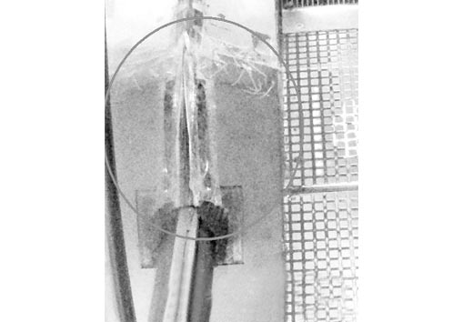 现代快报记者了解到,地铁1号线珠江路站1号出口的这部扶梯,靠近地铁站大厅的位置。正是这部电梯右侧扶手下的玻璃板,和连接的金属盒有缝隙,而缝隙部分,用透明胶带缠成了“T”字形。