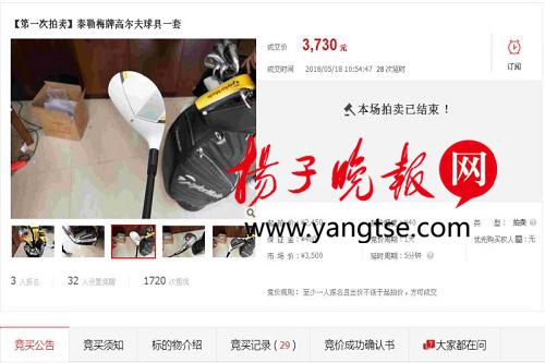 泰勒梅牌高尔夫球具一套,评估价3500元,起拍价2450元,被围观1720次,32人设置提醒,3人报名参与竞买,3位买家角逐竞拍。经过29次出价、28次延时,最终以3730元成功拍出,溢价率达到52.24%!