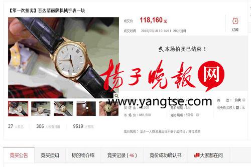 “老赖”三件奢侈品淘宝上拍卖 4万余的百达翡丽手表拍出11万多