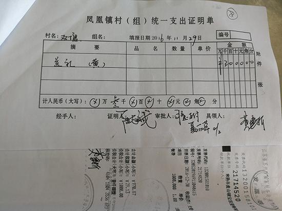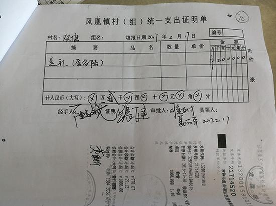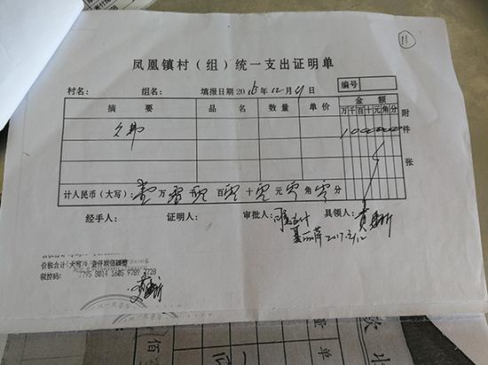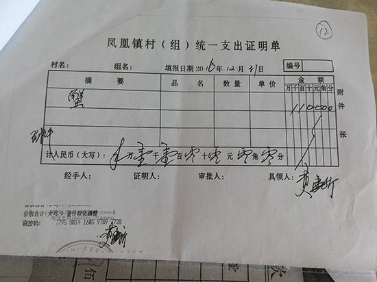 餐费,1万元 购买螃蟹,1100元钱静芳给澎湃新闻出示了她拍到的会计账簿上支出证明单,可以看出2016年11月到2017年1月这三个月,花费超过5万元,每一笔都备注有支出项目,且有村委会主任陆志斌签名,以及夏丽萍“同意支付”的签字。