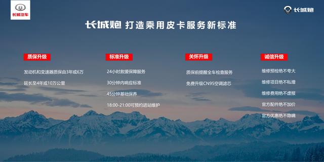 质保升级——长城炮整车质保升级到 4 年或 10 万公里,达到行业领先水平。