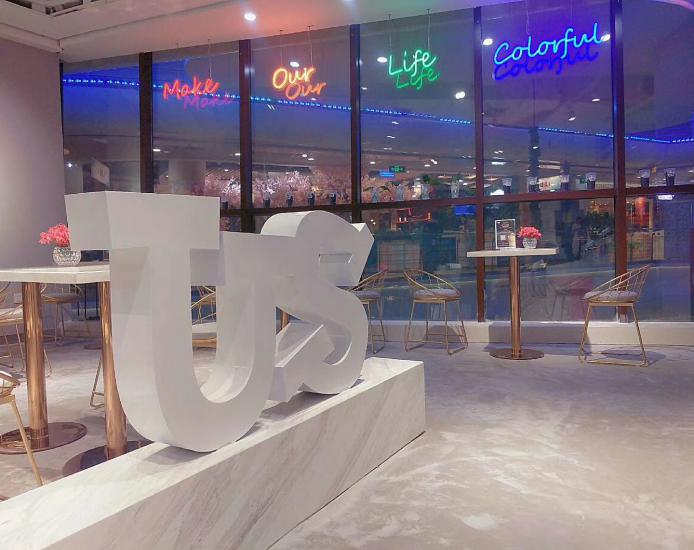 US Colorful Life以Colorful命名,就是为了在平凡的生活中,让顾客为自己的生活增添一点色彩。所以其杯子的设计全部是白色透明的,而色彩则来源于饮品,不同的选择,所获得的色彩是不同的。相同的在于,US坚持以高品质的原料为顾客带来美味的独创饮品。芝士盆栽可可、森林浆果苏打、薰衣草优酪冰、莓果优酪冰、芒椰之吻、奥利利奥奶摇都是US家自制研发,经过上百位美食达人见证和推荐的。