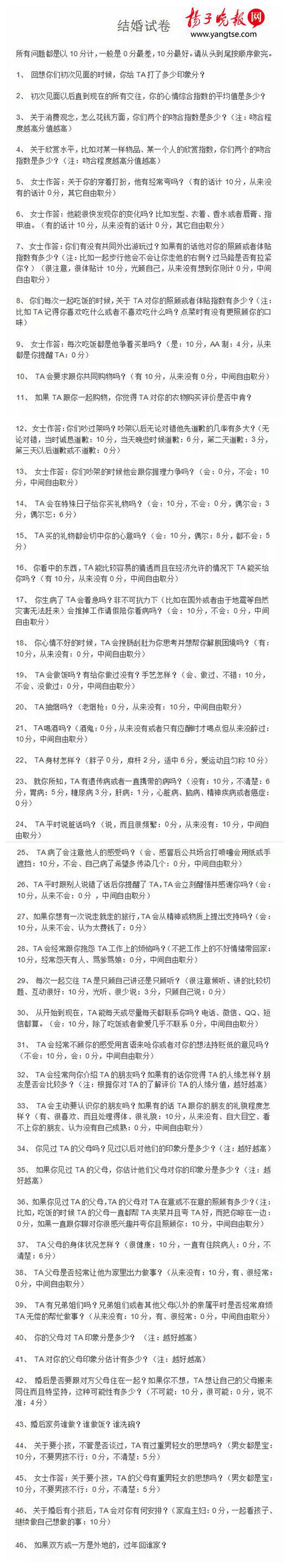 @淡梦就是爱吐槽:强烈建议推行结婚考试。上午家庭能力测试,分别有:如何管理情绪,如何解决纠纷,家务劳动基本技能,科普知识,家庭教育基础等题目。下午申论,围绕如何培养长期良好感情确保婚姻和睦,或者如何教育孩子的品行及文化素养,写一篇800字以上3000字以内的文章。