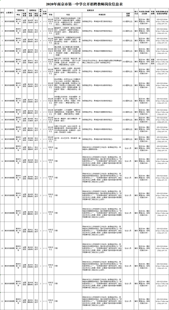 咨询电话:南京市第一中学校办(人事处)025-52216244