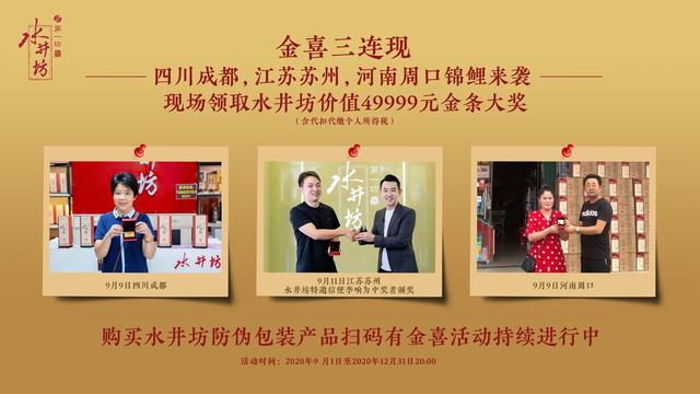 纵观整个白酒行业,敢于拿价值近5万元的金条作为抽奖礼品,可以说十分罕见。而且不同于一些品牌抽奖活动大奖迟迟不出现,水井坊这次活动启动不到十天,已经先后在四川成都、河南周口、江苏苏州诞生了三位金条获奖者!