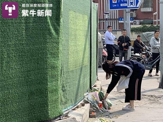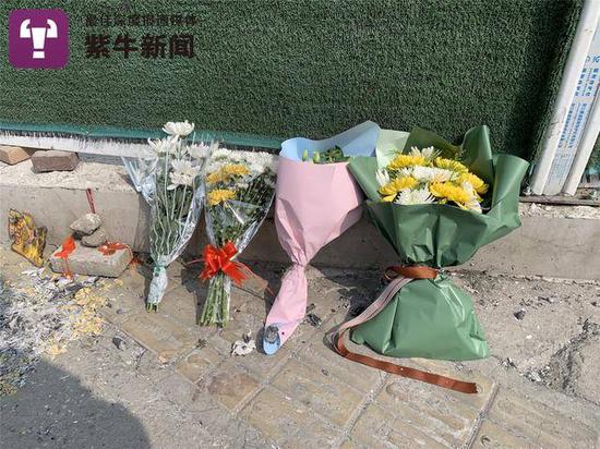 从昨天事发后一直到今天中午,陆续有人前来献花,还有人带来了两瓶白酒。25日中午11点40分左右,一位年轻女孩独自一人手捧一束黄白色的菊花来到现场,并弯下腰,将其郑重地放在路边的围挡下方。她告诉紫牛新闻记者,其并非逝者的亲友,自己每天上班路过这里,觉得这些逝者很可怜很无辜,因此献上一束鲜花以示悼念。