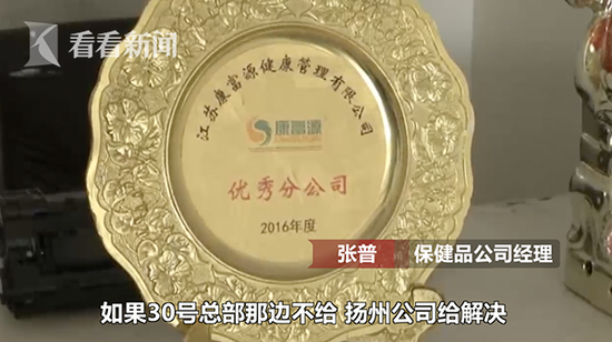 保健品公司经理张普:“这个是我们公司之前遗留下来的问题,因为我们公司总经理已经换掉了,30号我们何总到总部给我们总部汇报一下,如果30号总部那边不给扬州公司给解决。”