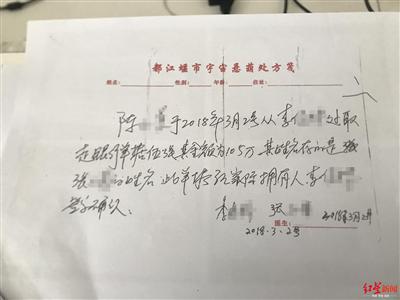 据陈女士的陈述,2018年3月2日,她从都江堰将李大爷和张某某接到自己农场过节。聊天期间,李大爷趁保姆离开时告诉她,自己的钱存在了保姆名下,内心十分不愿意。“大爷问我有没有办法帮他把钱要回来,并且还说当天家里还有30万元现金,保姆也要求存入她的名下。”得知这一情况后,陈女士与李大爷商量好以扩建农场为名义,借用资金,把存入保姆名下的钱“借”出来,然后再存入李大爷名下。按照这个计划,陈女士“借”走了李大爷家中银行存款单5张,存款单总金额共计105万元。5张单据中,有4张在张某某账户名下,1张在李大爷名下。为了说明虽然存款单在张某某账户名下,但实则所有权人为李大爷,三人现场书写了“存款单情况说明”。记者看到,在这张单据上,李大爷和张某某均签字确认。