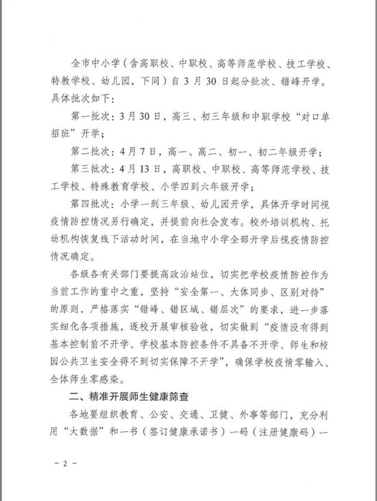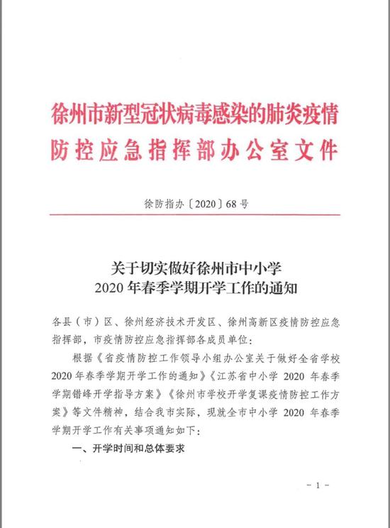 刚刚,徐州市防控组发布文件,确定全市各级各类学校2020年春季开学具体时间,开学共分为四个批次进行