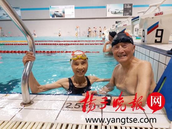 镇江八旬夫妻成泳池“明星” 每天结伴游泳40分钟