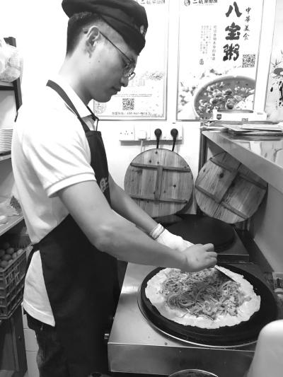 本报讯(通讯员 季天宇 蒋学飞 记者 谈洁) 做过车展会展、组建过送餐团队、推广过滴滴打车……南京林业大学毕业生魏鹏涛尝试过的创业项目非常多,这个“不安分”的年轻人在回老家做过“大项目”后,今年又“杀”回了南京,在学校开了家煎饼店。