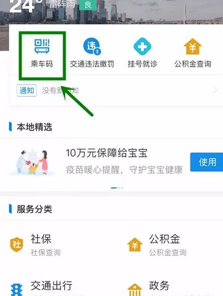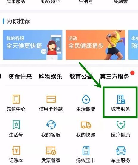 第一步:打开支付宝点击【城市服务】