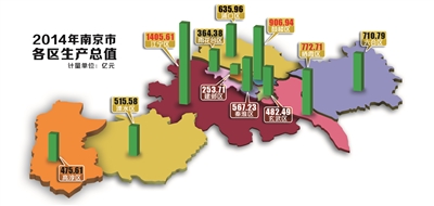记者注意到,2014年南京分区地区生产总值,最高的是江宁区为1405.61亿元,而第二位的是鼓楼区为906.94亿元,栖霞区、六合区紧随其后,而倒数第二位的则是雨花台区为364.38亿元,建邺区排名最后为253.71亿元。