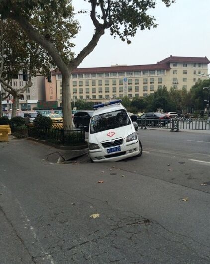 南京地铁四号线施工致道路塌陷 救护车被卡(组图)