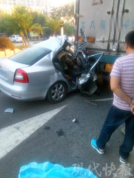 现代快报讯(记者 孙玉春)昨天早晨七点左右,在南京浦口区雨山西路雨山美地门口,一辆斯柯达轿车追尾一辆厢式货车,车顶右边被削掉一半,正副驾驶位置上的人受伤较重,后座一名男子和一个男孩没有大碍。
