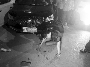 目击者称,女子20多岁,被撞出3米开外,躺在地上不能动弹,两只鞋子一只飞到尼桑轿车车顶,一只落在地上。尼桑又顶到前面的另外两辆轿车。