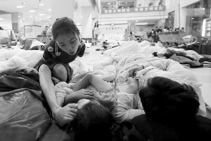 无臂女孩在医院照顾伤员 网络图片灾难来袭