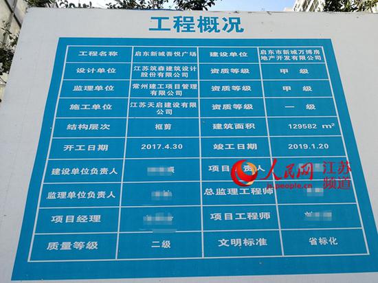 江苏启东新城吾悦广场工程概况。记者 王继亮 摄项目被曝有楼板裂缝、露筋等问题