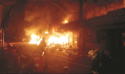 5日凌晨1点半,南京金陵小区五村附近的沿街商铺起火,烧毁7间商铺,方家营消防队员用近一个小时的时间,才将大火彻底扑灭。据了解这里的商户大都经营百货,塑料制品较多,这也给灭火带来了困难。 (报料人:张先生)
