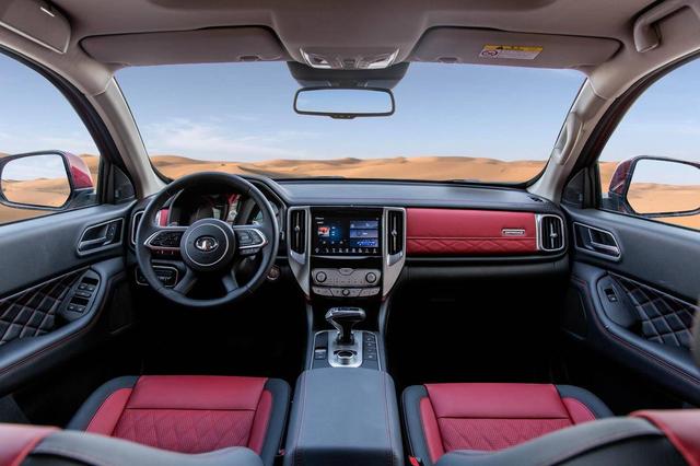 造型设计上,新车突破了传统皮卡车型的固有印象,全车采用黑色铁质包围、LED熏黑大灯、铆钉连接的黑色轮眉,散发着与生俱来的强悍。大容量货舱专门设计了黑色哑光金属防滚架,适用于各种探险场景。后杠两侧,特别针对高强度越野设计的黑色金属踏板,踏上去的那一刻,带来十足的踏实感。此外,车尾拖车钩以及220V电源插座等,也是越野时不可或缺的实用配置。