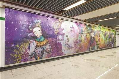 五塘广场站的“太虚幻境”,采用彩雕艺术玻璃制作,表现了“天仙福地太虚境”故事。