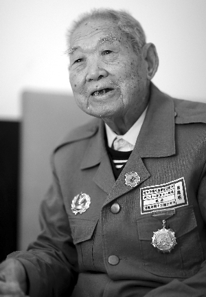 老人穿着在阅兵式上穿过的服装,左胸前缝着部队番号及职务——中国远征军卫立煌长官部运输15团12连连长。两枚纪念章熠熠生辉,一枚是中国人民抗日战争胜利70周年纪念章,一枚是参加阅兵的纪念章。