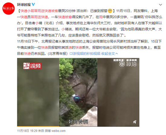 【快递小哥冒雨送快递被偷,暴哭20分钟令人心疼】11月15日,网友爆料,上海一快递员冒雨送快递,一车快递被偷得没剩几件了,在雨中暴哭20多分钟,一直嘶吼“你叫我怎么办”。随后,有位好心大爷上前安慰,帮小哥撑伞。