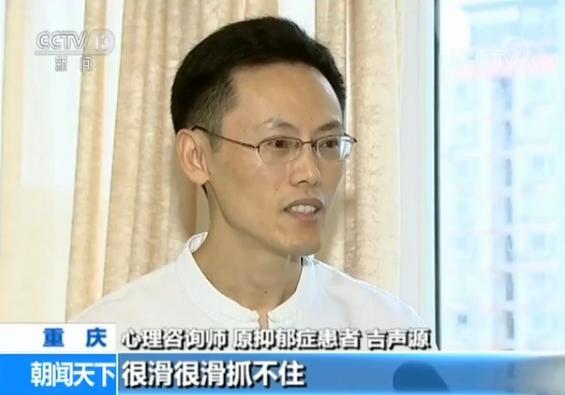 心理咨询师、原抑郁症患者 吉声源:最明显的反应就是失眠。我连续是七天七夜没有睡觉,感觉不停地急速地往下滑。深不见底一片黑暗,老是想去伸手抓一根稻草,但是那根稻草就感觉很滑很滑抓不住。还是有求生的欲望,但是那个时候人整个兴趣基本上完全丧失了。