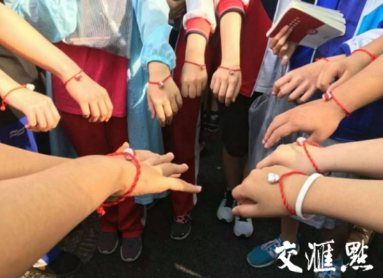 上午8时许,考点大门还没打开,南京金陵汇文学校的班主任们逐个给考生们的手腕系上红绳,还有老师披上红披风。“除了祝福还是祝福,预祝开门红!”送考的张老师一脸笑意。在南京29中考点,南师附中树人学校送考的女教师全部身穿旗袍站成一排,与学生们温情拥抱、击掌,祝福他们“旗开得胜”。29中致远校区的送考老师还特意准备了造型为“马”的五彩气球,意在祝孩子们“马到成功”。