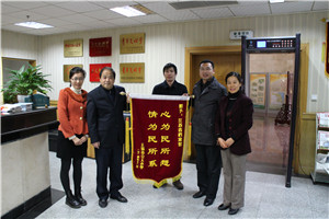2014年12月15日,无锡市立人小学校长刘玮同志来到我省馆查档大厅,将一面印有“心为民所想,情为民所系”的锦旗赠送给管理部负责同志,以表达对查档工作人员热情周到、细致服务的感激之情。