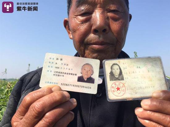 两张身份证,一张签发日期是1988年,上面的照片还是女子中年时候的模样。另外一张签发日期是2007年,当年的中年女子已经成了一名白发苍苍的老人。身份证上的人名叫孙侠,是老人已经去世了11年的妻子。