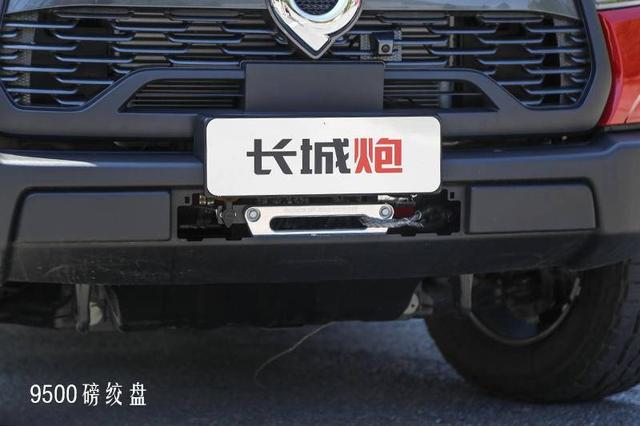 因为之前我的同事在实拍文章里已经将越野炮外观解析的非常详尽了,所以我在这里只是做一些越野炮外观给我的感受吧。越野炮的一切设计基于乘用炮进行改进的,它的设计是从越野实际出发,并不是那种为了看上去越野从而刻意设计的那种。它配备了铁质前保险杠、铁质后保险杠、铁质侧面踏板、9500磅绞盘、固铂18英寸AT轮胎、A柱涉水喉,以上这些都是越野车当中较为实用的改装配件,它们在越野过程当中的作用比外观更加重要。