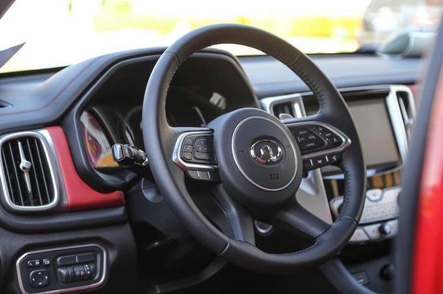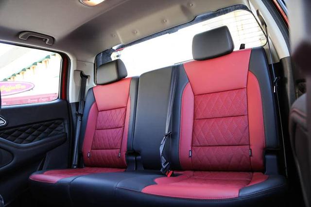 越野炮在内饰造型上与乘用炮完全相同,两者的区别在于乘用炮选择了凸显豪华的棕色风格,而越野炮则大胆的采用了红/黑风格,并且在真皮的缝线处理上也大量应用菱形缝线,让整体的风格活跃起来。以上其实就是越野炮内饰的变化,仅此而已。