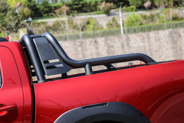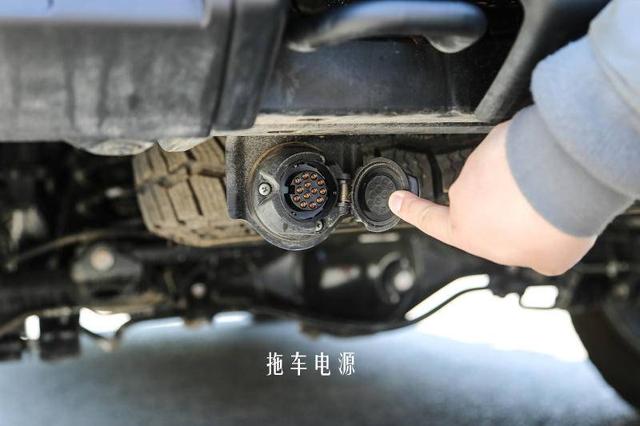 越野炮的货箱部分除了龙门架进行了改变,同时货箱盖上依然保留了可收纳式的货箱脚踏,方便上下货箱。并且为了方便车顶探照灯的安装,越野炮预留了探照灯电源接口,并且在车内阅读灯区域预留了探照灯的开关,避免破线改装等风险与隐患。同时值得一提的是,考虑到越野炮的用户存在拖车需求,在车尾底部已经配备好拖车电源接口,避免后期改装所带来的隐患。