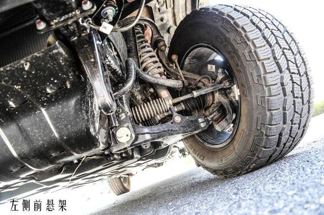 现在我们再来讲讲越野炮每个外观件的基本作用。铁质前保险杠、铁质后保险杠、铁质侧面踏板这三个铁质配件作用很简单,就是增加车辆边缘防护能力,因为这三个位置在越野过程中是除了底盘以外最容易受伤的位置,如果你还是一副塑料保险杠,一次越野穿越之旅过后,你可能都不会知道你的保险杠在什么时候消失的;前保险杠内部隐藏了一副具有9500磅拖拽力的绞盘,绞盘算是越野车的保命工具,借助绞盘的拉力可以自救,也可以救别人;固铂18英寸AT轮胎,增加非铺装路面抓地力。