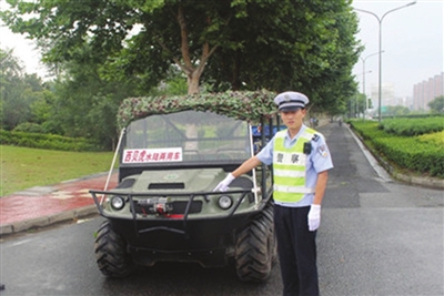当天下午,在六合大道执勤的龙池中队民警发现一辆水陆两用车正由北向南行驶,民警立即将该车拦截进行检查。该车外形像船,但底盘配有六个轮子,是水陆两用车。但是车主陈先生却拿不出相关行车手续。他告诉民警,这辆车原先是租借给金牛湖景区作游览设施的。最近,他与金牛湖景区的合同到期了,于是准备把这辆水陆两用车运回大厂的家中放置。由于是特种专用车辆,不能正常上牌上路行驶,运输应找专用车辆运输,可他觉得租一辆专用车从金牛湖运往大厂费用不菲,有点不值。于是他自己驾驶准备开往大厂,谁知半路上被交警查到。目前,该车因违法上路被依法暂扣处理。