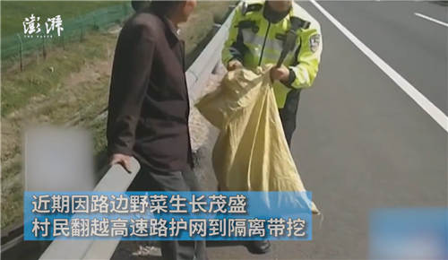 淮安村民“组团”上高速挖野菜 民警冒险车流中劝离