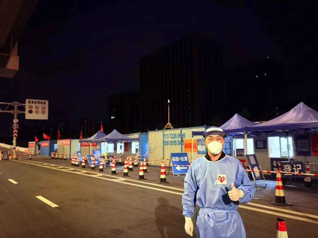 四桥的抗疫交通查验点,犹如一个抗疫“战场”,我和其他抗疫志愿者一道完成了一轮又一轮初查分流、核酸检测、再核协调、终核放行等“战术动作”……志愿者中有来自卫生系统的大白,有来自人民卫士的警小蓝,还有来自市、区、街道各级的民小蓝,大家包裹严实、动作迅速、态度诚恳、严谨细密。虽然来源广、人员多、岗位杂,但我们的目标只有一个,那就是齐心协力,坚决执行各项抗疫要求,严格各项工作标准,严防死守防输入;同时,牢固树立服务意识,不断改进工作作风,为广大司机和群众服务,为促恢复、保发展做出应有的贡献!
