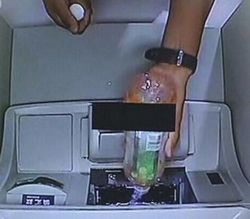 南京一奇葩男子水淹ATM机 幻想能吐出钱来(图)