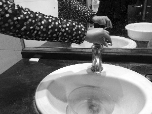徐女士家住盐城记者家园4楼,她中午提前下班回家准备放自来水做饭,结果发现小区住户都没有水,一楼有一点,可水流很小,好多人到楼下邻居家排队提水,这让徐女士大为光火,“早上自来水还是正常的,怎么说停就停,连个告示也没有。”因为家中没有提前备水,无奈的徐女士,只好带着女儿和丈夫到外面的小饭店将就了一顿。