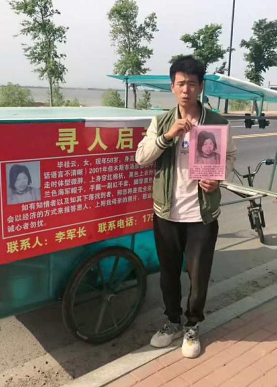 今年4月,黑龙江的李军长带上被褥,拉着一辆改装后的架子车踏上寻母之路。