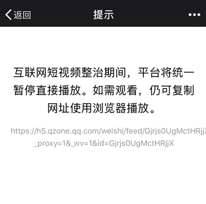 记者4月11日从腾讯获悉,继快手、火山小视频等APP被下架,内涵段子永远关停之后,微信、QQ也将在互联网短视频整治期间,暂停短视频APP外链直接播放功能,涉及的APP包括微视、快手、抖音、西瓜视频等。如果用户需要观看,仍可复制网址链接,并使用浏览器进行播放。