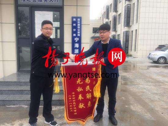 由于抢救及时,67岁的伤者丁某已脱离生命危险。3月20日,丁某家人特地将赶制的一面锦旗送到宁海派出所表示了万分谢意。