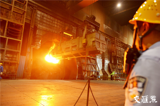 20日上午10点,记者在销毁现场看到,先期运抵待销毁的非法枪爆物品已经有一部分被放进了炼钢车间的填料斗内。10点30分,尚建荣下达全省集中统一销毁非法枪爆物品命令。“”,装满了非法枪爆物品的填料斗被吊车缓缓吊起,向炼钢高炉的填料口移动。填料口打开,火红的钢水发出刺眼的光芒,热力散发,整个车间的温度瞬间升高。“高炉内的温度达到1500℃以上,非法枪爆物品进去后,会被瞬间熔炼销毁。”现场南钢的工作人员告诉记者。