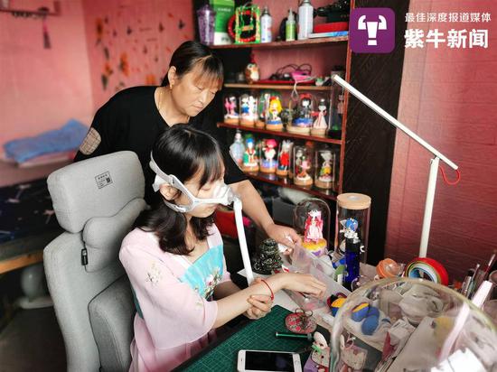 向晨曦说,一家人无论穷富,都要在一起,所以妈妈和她一起跟着爸爸来到了无锡,她非常感谢爸妈没有让她变成留守儿童。记者注意到,他们居住的房子是毛坯房,并没有装修,只有晨曦的房间用粉红色的墙纸简单贴了一下。记者来的时候,她正戴着呼吸机制作粘土娃娃。她穿着一身网上买来的粉红色汉服。她告诉记者,衣服花了六七十元,因为考虑价格,下单让她犹豫了好久。现在她一天必须要睡满12个小时,不然身体受不了。呼吸机戴的时间太长,容易耳鸣,而且脖子僵硬。所以每隔两三个小时,她就要躺下休息一会。她以前两三天可以做一个娃娃,现在可能需要一周时间。她状态最好的时候,一个月能做二三十个。